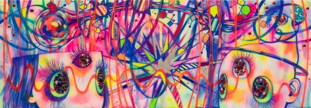 Cotton, acrylic, gems, glitter,